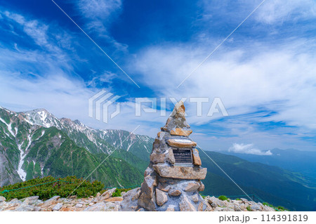 【登山素材】初夏の蝶ヶ岳山頂からの風景【長野県】
