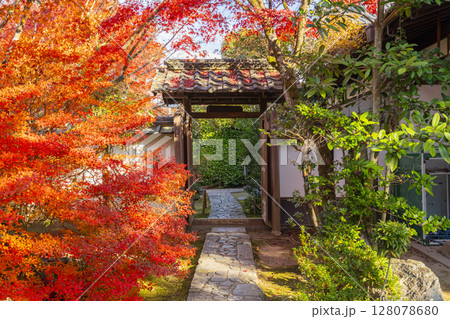 秋の京都 紅葉に包まれた金福寺の境内