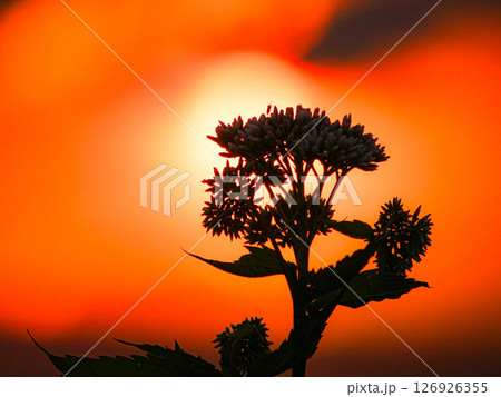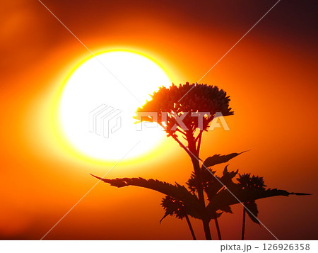 晩秋の夕陽を背にシルエットになった枯れた葉っぱ