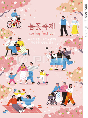 People who take a walk with their family, take selfies, relax, and enjoy spring flower festivals in the park