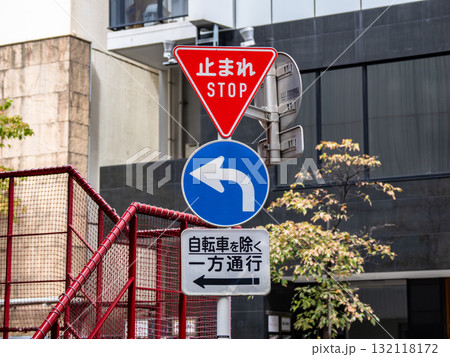 道路標識 規制標識 330-B「一時停止」・311-B「指定方向外進行禁止」・316「駐車禁止」