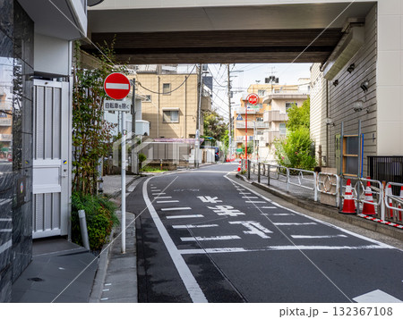 田園調布「どりこの坂」にある赤色舗装路と「自転車を除く」進入禁止標識