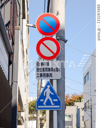 道路標識 規制標識 316「駐車禁止」・302「車両通行止め」・指示標識 407-A「横断歩道」