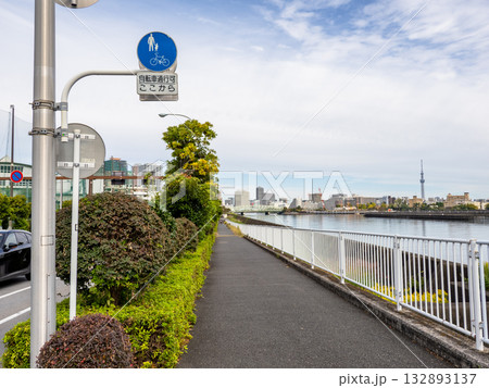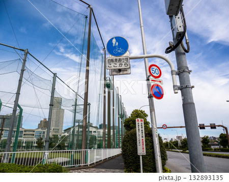 日本の横浜都市景観 「自転車及び歩行者専用道路」標識=横浜市内