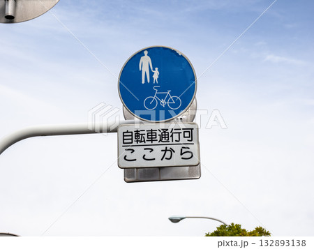 道路標識 自転車通行可の歩道と普通自転車専用通行帯