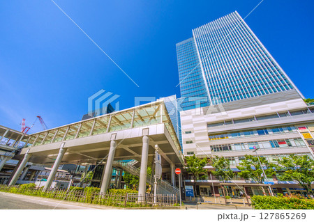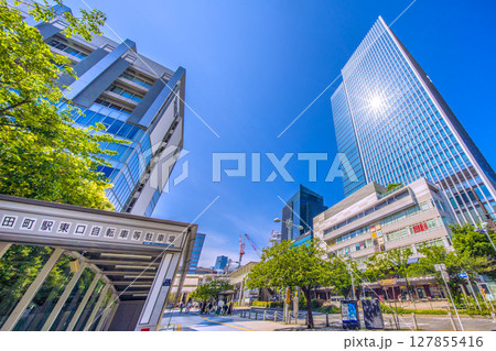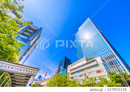日本の東京都市景観 真夏のような日差し…田町駅東口などを望む