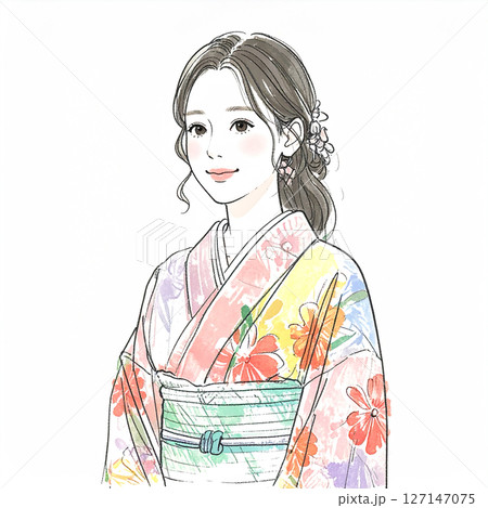 着物の女性イラスト素材