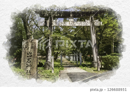 水彩画風 出石神社 一の鳥居 兵庫県豊岡市