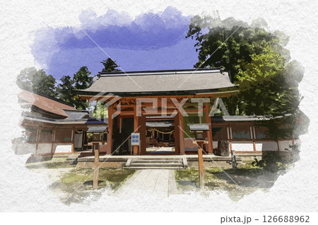 水彩画風 出石神社 拝殿 兵庫県豊岡市