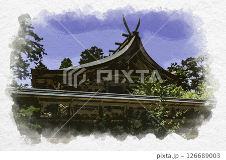 水彩画風 出石神社 本殿 兵庫県豊岡市