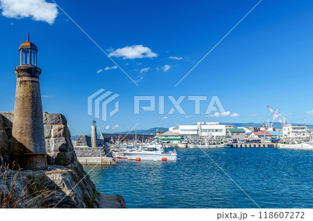 【北海道:函館】舟入澗防波堤(石積防波堤)がみえる函館漁港の風景