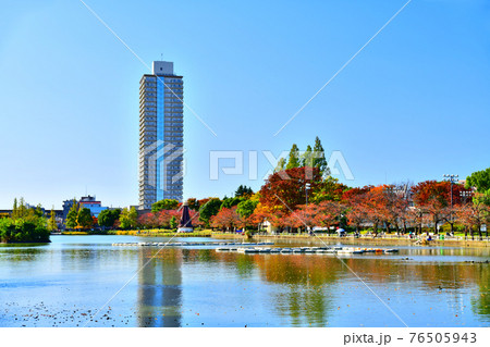 秋の都立浮間公園:浮間ヶ池と風車(東京都北区/板橋区)