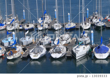 午後の港・ヨットハーバーに入港する小型のヨットのある風景
