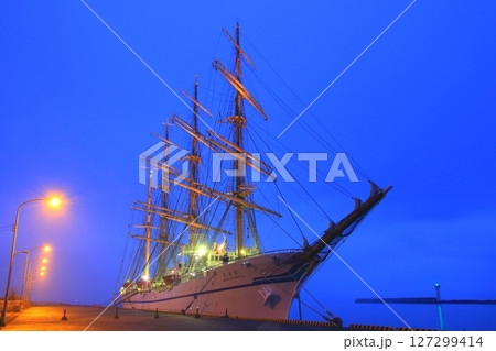 名古屋港 日本丸 海王丸 日の出前 帆船 寄港 練習帆船 航海練習船