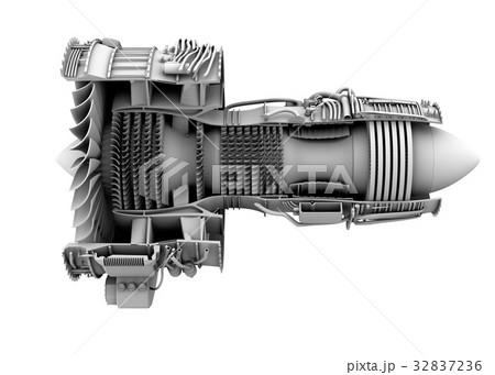 ターボファンエンジンのグレイシェーディングカットモデルイメージ