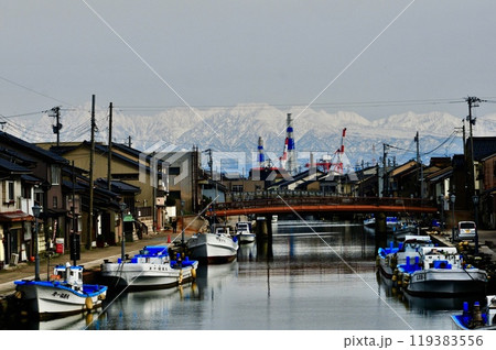 静岡県/ 夕暮れ時の田子の浦港と富士山