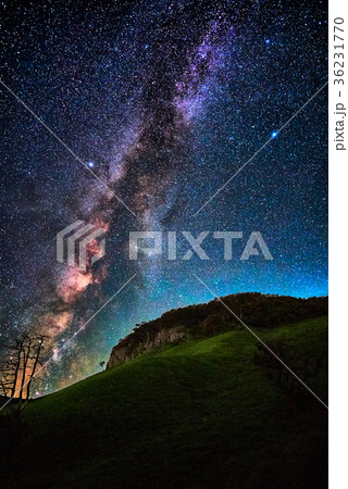 天の川と船上山の屏風岩(鳥取県東伯郡琴浦町)