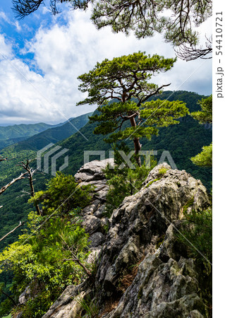 鳥取県の夏の船上山の屏風岩と青空
