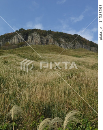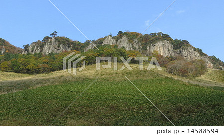 船上山(せんじょうざん)古期大山(約数十万年前~約20万年前)火山の外輪山北縁の溶岩台地 落下する雄