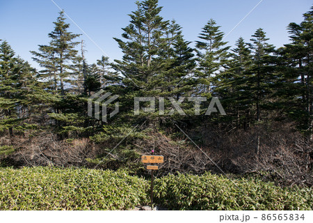 長野阿智村と岐阜中津川の間にある紅葉の時期の日本百名山の恵那山の広河原ルートの枯れ木