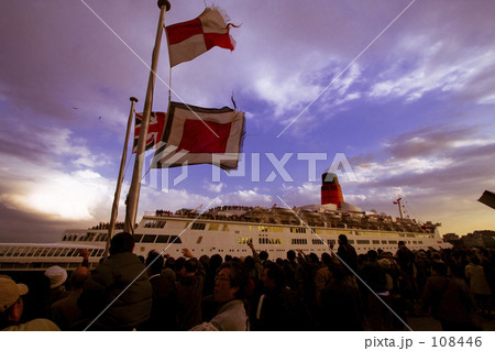 見送られる客船
