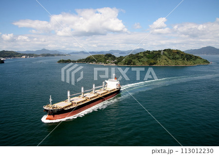 来島海峡大橋を通過し斎灘に向かう貨物船