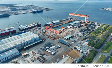 港湾のドックの空撮風景