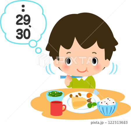 よく噛んで食事する女性と唾液・酵素のイメージ