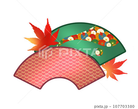 和柄のグラデーションの背景に扇子に色づいた紅葉