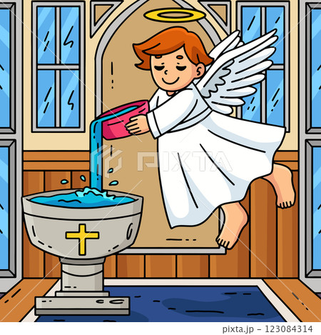 Baptism Fountain and Cross Cartoon Colored Clipart
