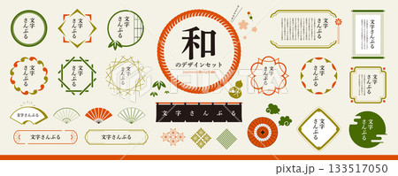 和風のデザイン素材セット/フレーム、装飾、見出し、年賀素材