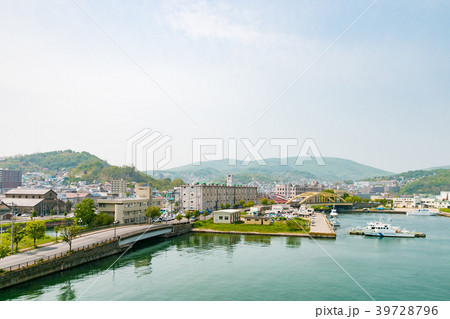 海辺の町並みと釣竿 北海道小樽市色内埠頭