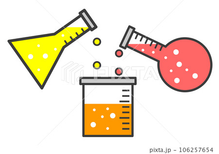 ガラス製の容器にカラフルな色を混ぜて調色をするイラスト