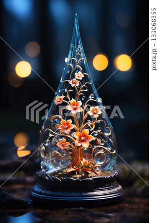tiny Christmas tree made of glass as decoration for New Year holidays, forest, winter season