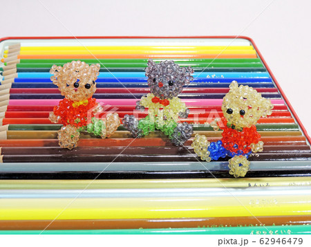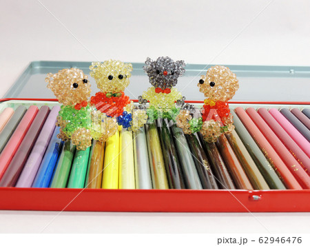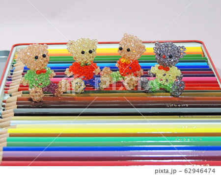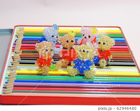 色鉛筆とテディベアの画像素材(写真・イラスト) 1ページ目