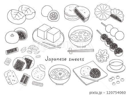和菓子にまつわる手描きイラストセット2(モノクロ)