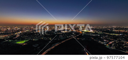 空撮「埼玉県」見沼からさいたま新都心の夜景を撮影 さいたま市
