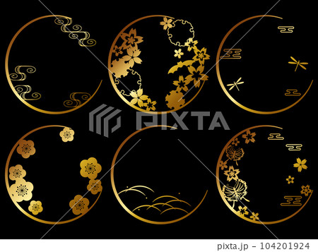 高級感のある和柄の円形フレーム6種セット ホワイト&ゴールド