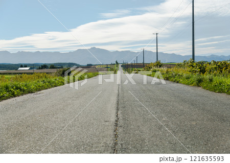 【富良野市東富丘 芦別岳にのびる一直線の道】