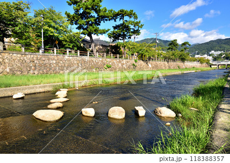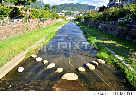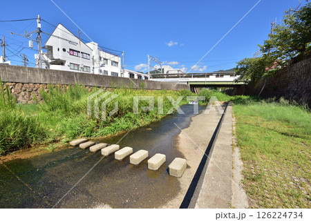 芦屋川 飛び石のある風景 業平さくら通り 兵庫県芦屋市大正橋付近