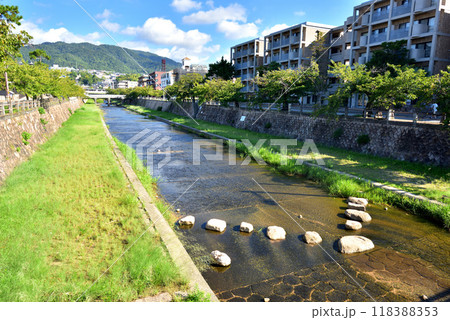 大正橋から見た芦屋川と街並み 兵庫県芦屋市