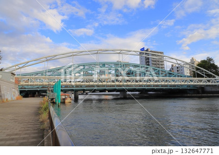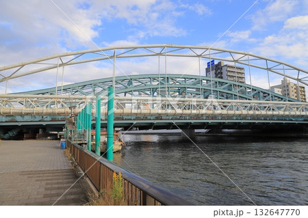 千住隅田川テラスから見る風景(千住大橋と千住水管橋)