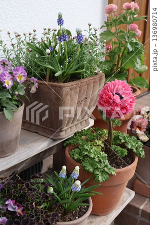 春の花の寄せ鉢