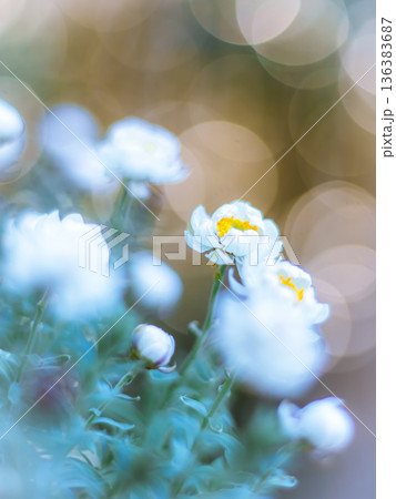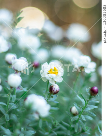 白く可愛い花のポートレート風写真。シンプルな構図です。