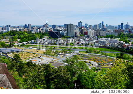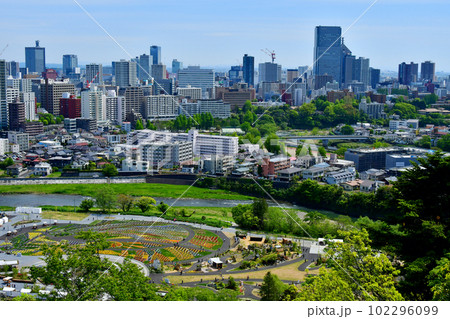 仙台市、花と杜のフェア会場から眺める市内街並みの風景