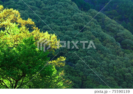 新緑の北杜地域 谷を彩る新緑 春の樹木 花と植物が織りなす色紙