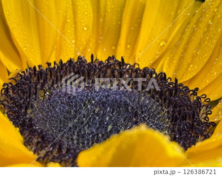 Macro Photography of Sunflower Center with Vibrant Yellow Petals Bursting Outward