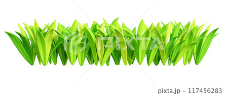 Green grass border 3d render illustration. Cartoon long tuft of greenery for summer, spring or Easter design. Field and grassland bunch. Frame from vegetation with sprout blade leaf.