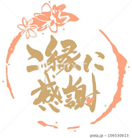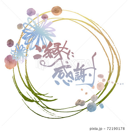 筆文字 ご縁に感謝(のじぎくの墨絵)印風 .n