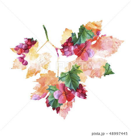 Wine making vine watercolor drawing in the shape of a leaf, isolated on white, with clipping path
